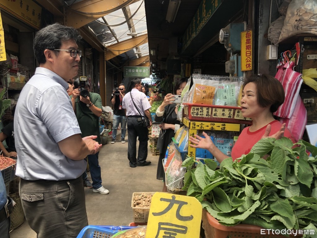 ▲姚文智走訪萬華區青草街。(圖/記者潘永鴻攝)