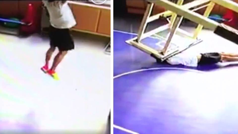 浙江省杭州市一處健身中心的24歲萬姓男員工,於上班時間到籃球館玩球,不料在灌籃的那一刻,兒童規格的籃球架疑似撐不住成人的體重,當場倒下狠狠砸到萬男的臉,臉部因深度劃傷縫了好幾針,目前沒有生命危險。