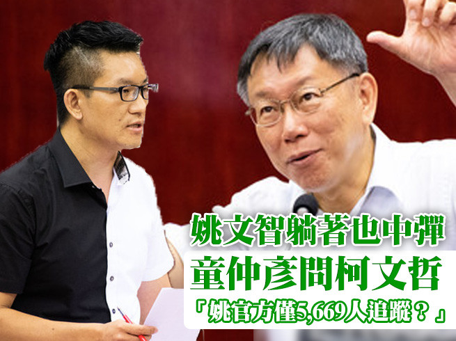 台北市議員童仲彥17日在議會施政報告中質詢台北市長柯文哲官方LINE帳號有19萬人追蹤一事,柯文哲先是笑說,「我看學姊開(LINE官方帳號)的話,很快就50萬人數。」但童仲彥隨後又關心民進黨市長參選人姚文智追蹤人數,問柯文哲為什麼姚文智只有5,669多人?這個突來的問題除了讓姚文智躺著也中槍外,也讓柯文哲一頭霧水,只能不做任何評論地表示,「不知道」。