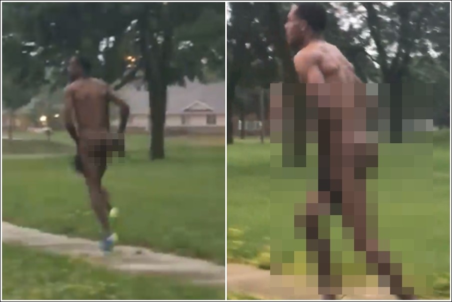 美國網友在臉書上傳一部影片,內容是一對坐在車內的男女突然看見外面有一名黑人男子從小木屋跑出來,身上僅穿著一雙螢光球鞋,手抓著衣物遮住重要部位,不斷向前奔跑,在下大雨的天氣裸奔。