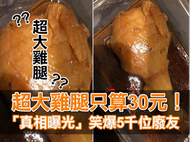 怎麼有這麼大的雞腿!一名網友在臉書上透露,去夾了一隻超大滷雞腿,他還稱老闆說要打烊了只算30元,帶回去後卻發現了驚人的事實,真相讓所有網友震驚笑瘋:「這到底是什麼啦!」