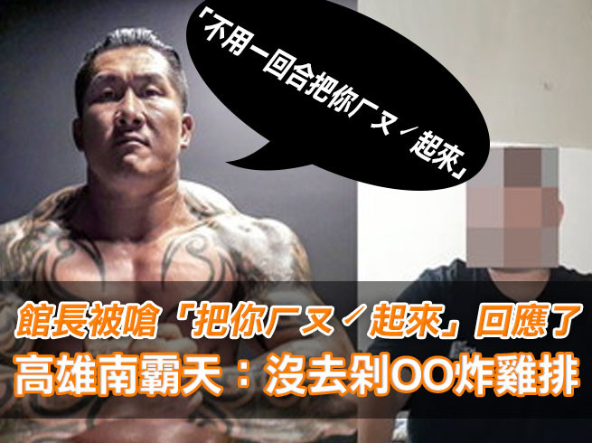一名魏姓男網友自稱是「高雄南霸天」,向成吉思汗健身俱樂部「館長」陳之漢下戰書,「不用一回合把你ㄏㄡˊ起來」。對此,館長今天(18日)凌晨回應,「他是第一個這樣做,讓我連一點點生氣都沒有的人。」魏男則嗆聲,「O我真的沒去雞雞剁下來炸雞排!不要小看太極拳!以柔克剛」、「墨西哥都能踢贏德國了,我打贏館長有不可能嗎?我真他O笑死驗無傷。」