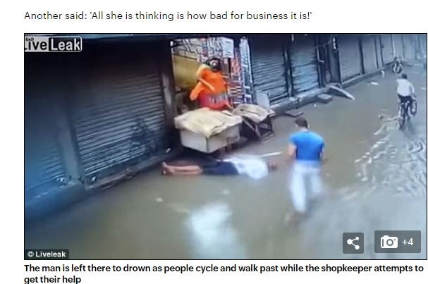 這名男子最後因無人救援活活淹死。這段影片之後在網路上流傳,有網友驚訝的說,「這國家到底是怎麼了」、「人心怎麼可以這麼冷漠啊」。