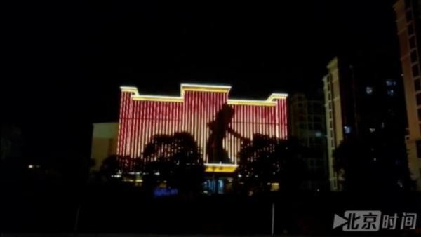 ▲湖南省永州市東安縣檢察院辦公大樓外牆,近日晚間出現疑似美女在跳舞的燈光秀。(圖/翻攝自北京時間)