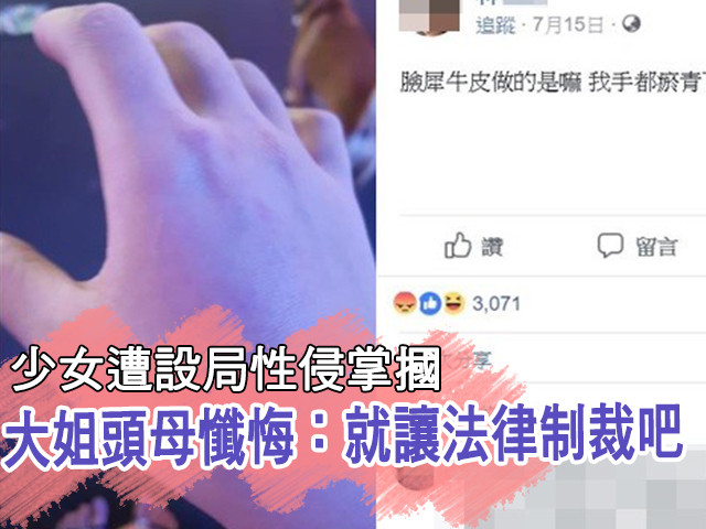 新北市14歲少女小君(化名)15日凌晨遭閨蜜好友約出後,押到蘆洲區成蘆橋下河堤輪番掌摑、痛毆,還拍下影片後分享給好友取樂,小君甚至被一名22歲李姓男子性侵;影片中一名打人的20歲林姓大姐頭事後在臉書PO出一張手背瘀青照片,調侃「臉是犀牛皮做的是嘛,我手都瘀青了!」遭網友連番砲轟,林母起先還幫忙護航,最後在留言中致歉「對不起,就讓法律制裁吧!」