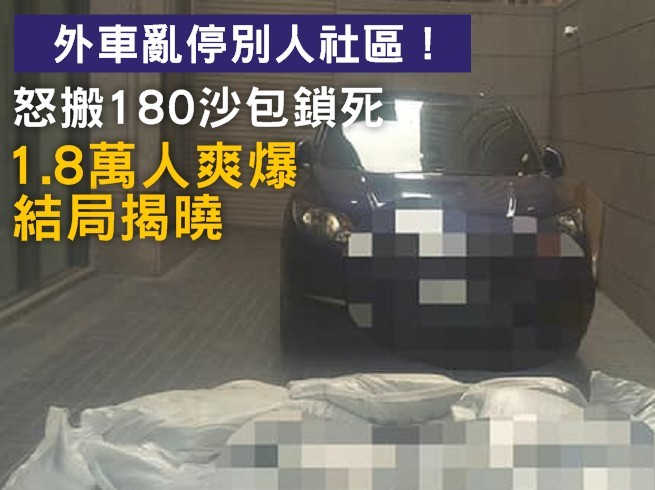 ▲外車亂停被180沙包封住,結局揭曉了。(圖/翻攝爆怨公社,下同)