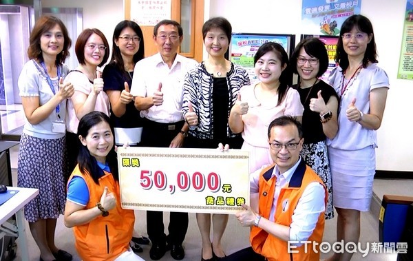 ▲局長王绣忠(後排右四)抽出最高獎項商品禮券50000元幸運得主。(圖/北區國稅局提供)