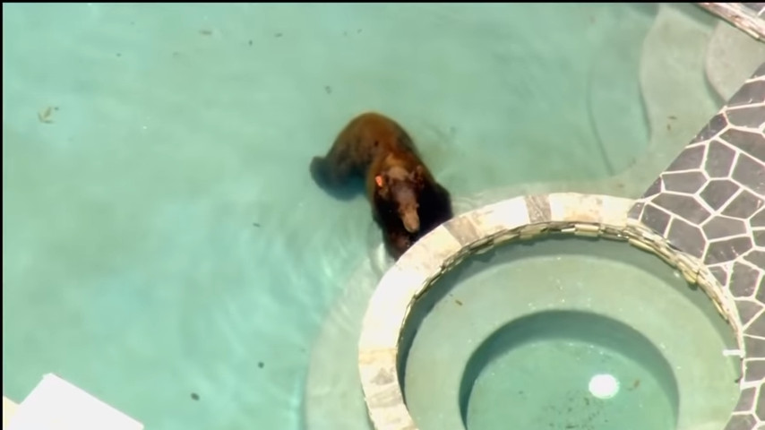 據《洛杉磯時報》報導,17日下午格拉納達山(Granada Hills)氣溫是華氏85度(約攝氏29.4度),一隻黑熊穿過住宅區,翻過圍欄進入附近民宅的游泳池,在水中悠閒地漫步,之後還靠在岸邊休息。