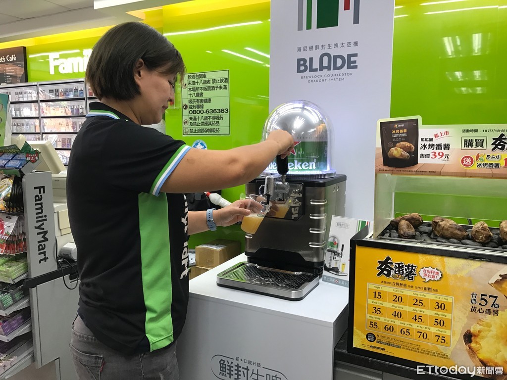 全家表示,每年6~9月的啤酒銷量約佔全年7成左右,尤其進口啤酒因單價高且引進新品多,所以每年幾乎都可成長一成,因此看好生啤酒商機和下酒菜併買率,目前先和海尼根合作在三家門市鋪設鮮封生啤太空機測試市場熱度,之後看反應如何才會陸續導入其他門市,預計第一階段鋪設百家。而這次引進的門市,預計單店啤酒業績可成長3成。