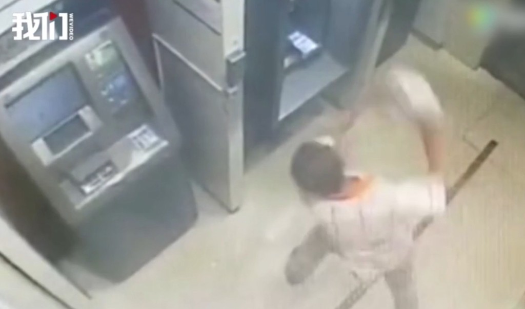 ▲男子拿石頭砸ATM。(圖/翻攝自澎湃新聞影片)