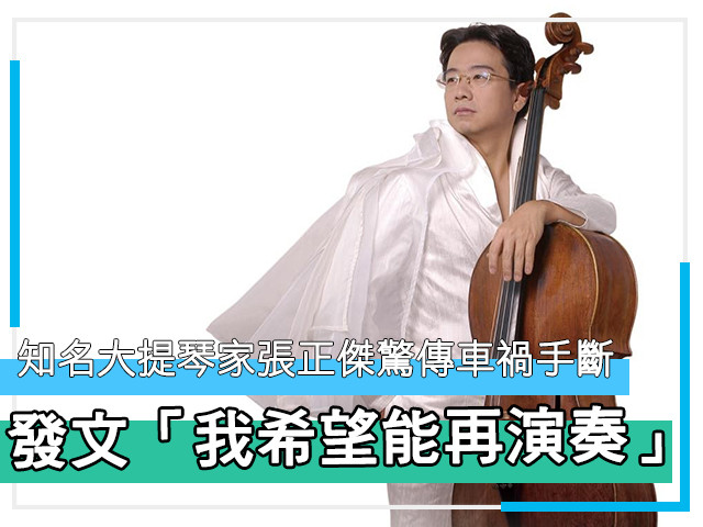 大提琴家張正傑驚傳左手手腕斷裂!國內知名大提琴家張正傑,今(20日)早在臉書發文透露騎單車車禍,導致左手手腕斷了住院,並將在明天上午9點開刀,「希望手術一切順利!」
