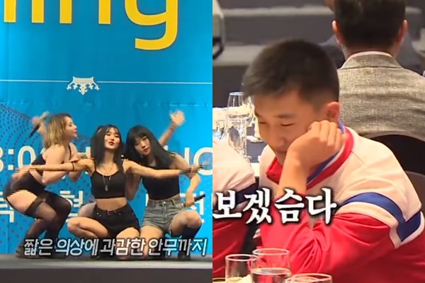 4人女團Holly Queen當天穿著超短背心、小可愛和短褲,還有人穿上絲襪,在台上展現好身材和性感舞姿。此時,台下的北韓選手卻明顯十分坐立不安,不是轉頭拿起杯子喝水,就是舉起手來擋住視線,其他人則是尷尬的互相對視與交談,或無奈的用手按摩太陽穴,完全沒有抬起頭觀賞演出,最後甚至集體「尿遁」離場,沒想到上完廁所回來,清涼演出還沒有結束,只好繼續坐在位子上,「眼神死」的盯著前方,直到表演結束。