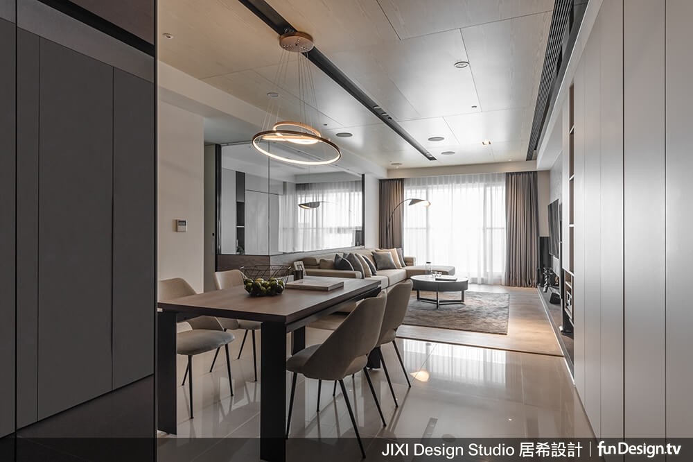 居希設計王昱承總監一改過去善於營造恢弘奢氣的典麗風格,改採大量木紋、漆料與板材來陳佈新居。秉持「簡單而豐富,平凡卻有趣」的宗旨,讓渴望在繁忙生活中汲取寧靜時刻的都會人們,一進屋即可舒緩身心,環步在優雅寂靜的空間中,瞥見生活的佳美。