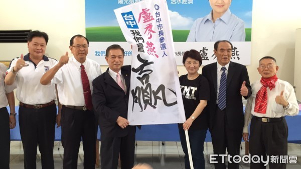 國民黨台中市長參選人盧秀燕20日成立第一個競選後援會。由中華民國公教軍警消暨退休人員聯合總會長、盧秀燕競選總主委江啟臣的岳父劉盛良自盧秀燕手中接過戰旗,期許盧秀燕能帶領國民黨光復大台中。盧秀燕告訴在場支持者:「台中贏,台灣就會贏!」現場情緒熱烈,高喊「盧秀燕、凍蒜」!