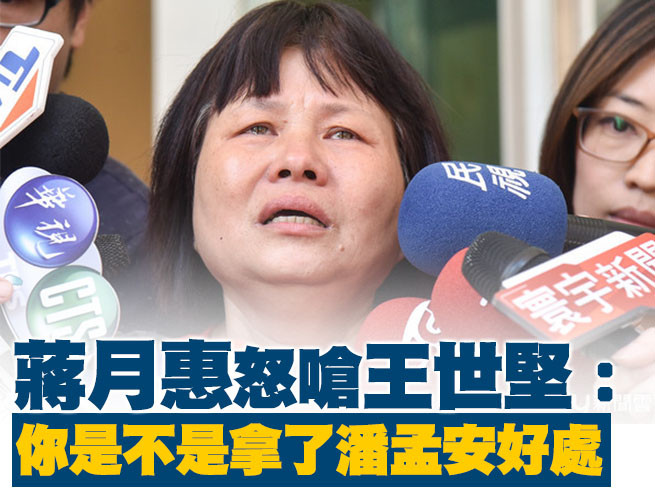 蔣月惠接著表示,她在臉書質疑潘孟安有不當金流,潘孟安就請律師發函給她,表明臉書要是不下架就不排除提告。但王世堅仍替潘孟安辯護,先是稱蔣月惠的慈悲心很好,後來批評蔣月惠不能汙衊別人官商勾結。