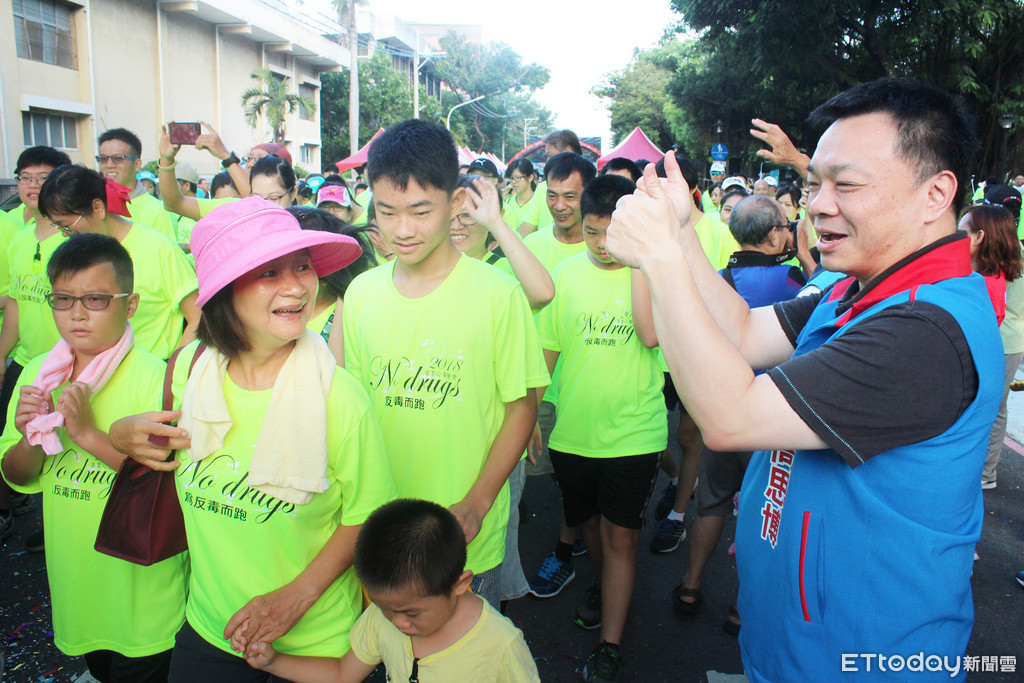 ▲國民黨台南市長參選人高思博,在台南市佳里中山公園為反毒跑民眾致意,並表示反毒決心。(圖/高思博提供)