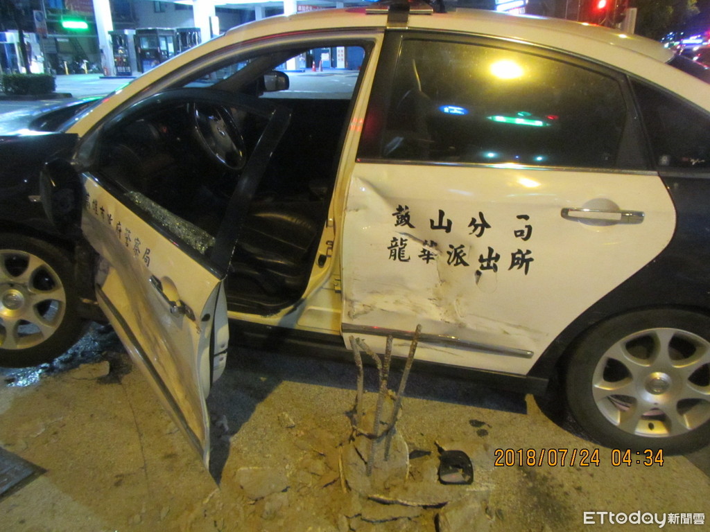 ▲酒駕男左轉搶快撞警車,依公共危險罪送辦。(圖/記者宋德威翻攝,下同)