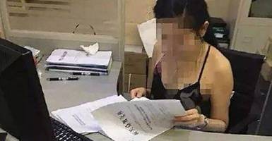 ▲女關員穿細肩帶辦業務引關注,事後風向大逆轉。(圖/翻攝自楚天都市報微博)