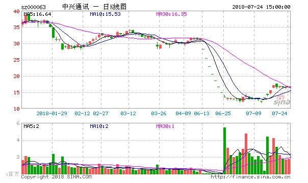 ▲中興通訊股市,可看到四月股市大跌,直到七月解禁才回升。(圖/翻攝自新浪財經)
