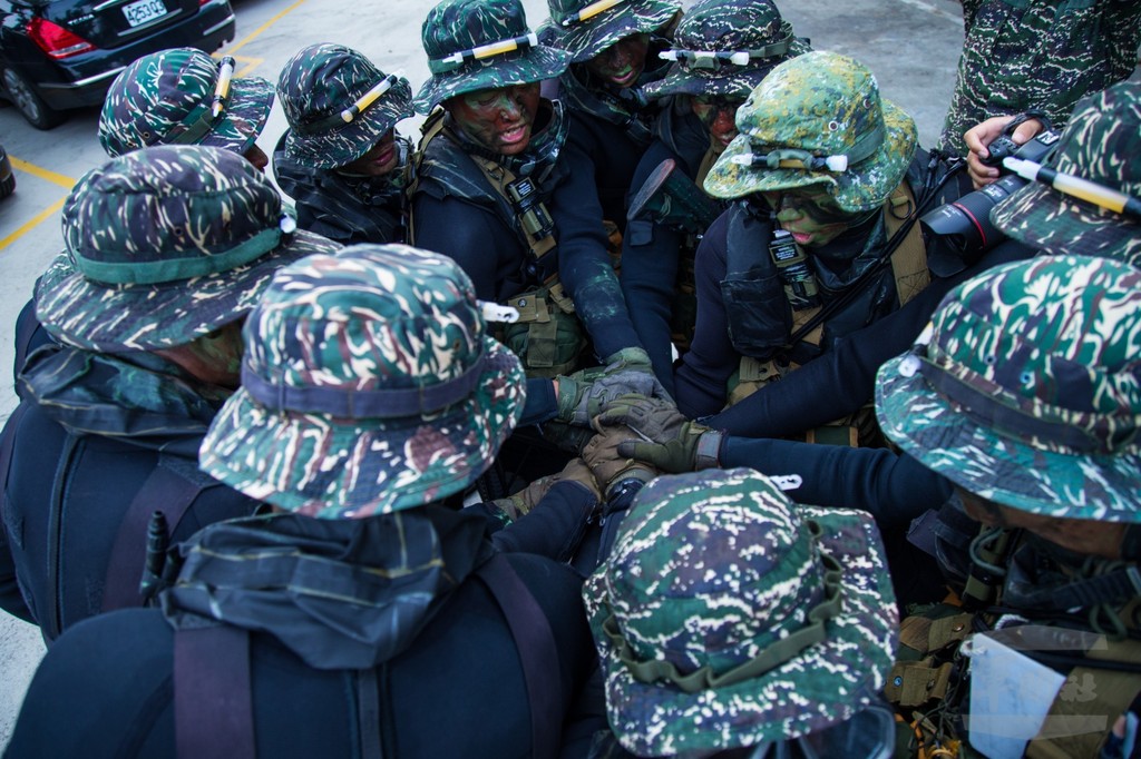 海軍陸戰隊兩棲偵搜大隊水中爆破專長班103期,學員在歷經16週的嚴格訓練後,從23日中午到24日凌晨進行綜合驗收訓練,通過教官對於學員們戰術動作、敵情判斷及水文偵察等等測驗後,方能拿到水中爆破中隊的臂章,正式成為爆破中隊的一員。