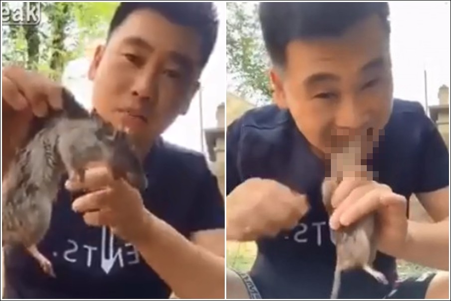 ▲中國一名網紅「旋瘋歐巴」生吃老鼠的驚悚影片又被翻了出來。(圖/翻攝自liveleak)