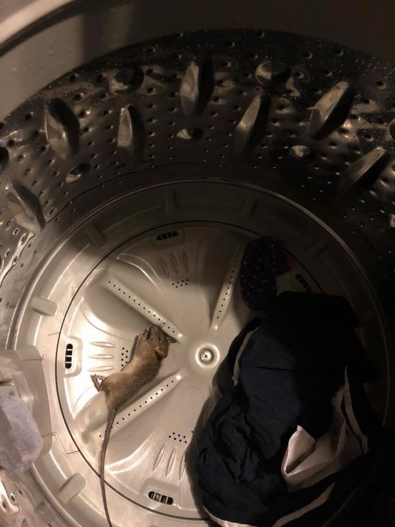 原po說,她家的洗衣機洗過錢、洗過螺絲,也洗過百香果,今天洗了一隻老鼠,還幽默的提到,她剛剛有放熊寶貝,所以老鼠應該是香香的了!至於這隻「香香鼠」最後的下場?原po表示,老公直接丟水溝了!