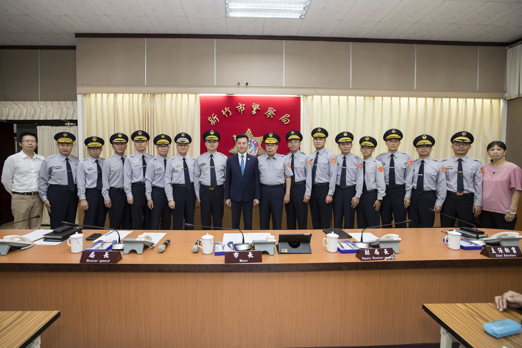 新竹市警察局於今(25)日舉行陞職人員授階典禮,共有14位科長原職晉升,職等由「警政二階」提升為「警正二階至警正一階」、由二線三星改列為二線四星;另有2位主任由「薦任第八職等」提升為「薦任第八職等至第九職等」。新竹市長林智堅到場為相關人員授予官階,他感謝警察局同仁的努力,讓新竹市治安益發進步,並勉勵同仁持續堅守岡位,讓幸福城市更安全。