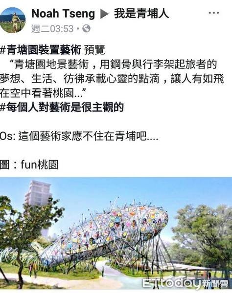 ▲「我是青埔人」預覽地景節青塘園裝置藝術,慘遭臉友一片撻伐!(圖/擷取自我是青埔人臉書)