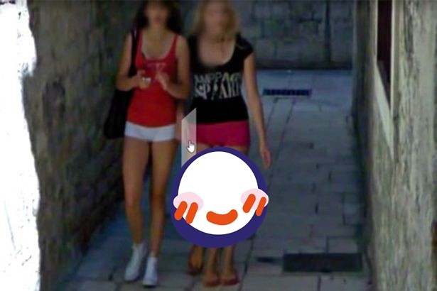 一名用戶在「Reddit」2張Google街景照片,第一張中有兩名短褲辣妹走在小巷裡,看起來非常正常,沒有什麼奇特的地方;但一旁路中卻冒出一個半身的人影,長髮女露出一顆頭凝視著走在前方的兩名女子。