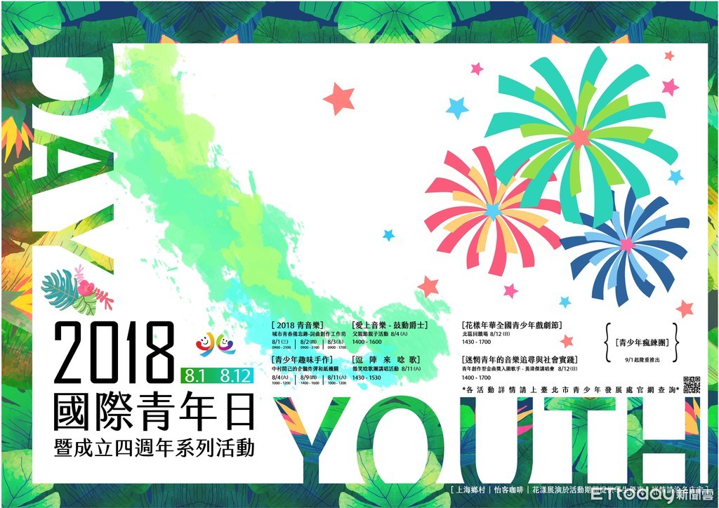 國際青年日的活動迄今已經邁入第4年,青發處表示,台北市每年都響應國際青年日的主題,藉由系列活動,讓青年能夠自由的表達自己的想法和意見,深入參與公民社會事務。相關活動內容及報名細節,歡迎民眾上青發處官網(https://www.tcyd.gov.taipei/)查詢。