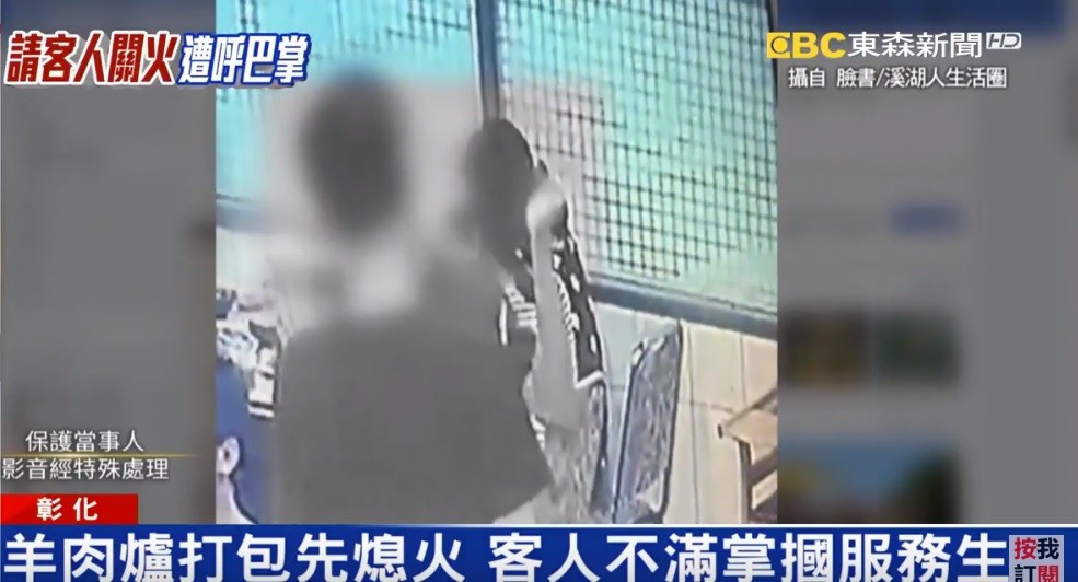 ▲工讀生只是請男客先關閉爐火,待稍後冷卻再行打包,不料竟遭到男客憤怒掌摑。(圖/東森新聞)