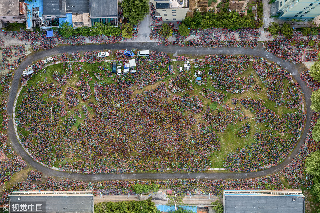對此,大陸年輕導演、攝影師吳國勇用半年的時間,走訪20多個城市,拍下各地區的共享單車墳場,用空拍機紀錄五顏六色密密麻麻的每個故事,「無處安放」的它們似乎顯現人類的可怕慾望。吳國勇說,最震撼的單車墳場在廈門同安,它是一個工業園區,面積不算大,但單車是從下面一層一層碟起來,大概有10公尺高。