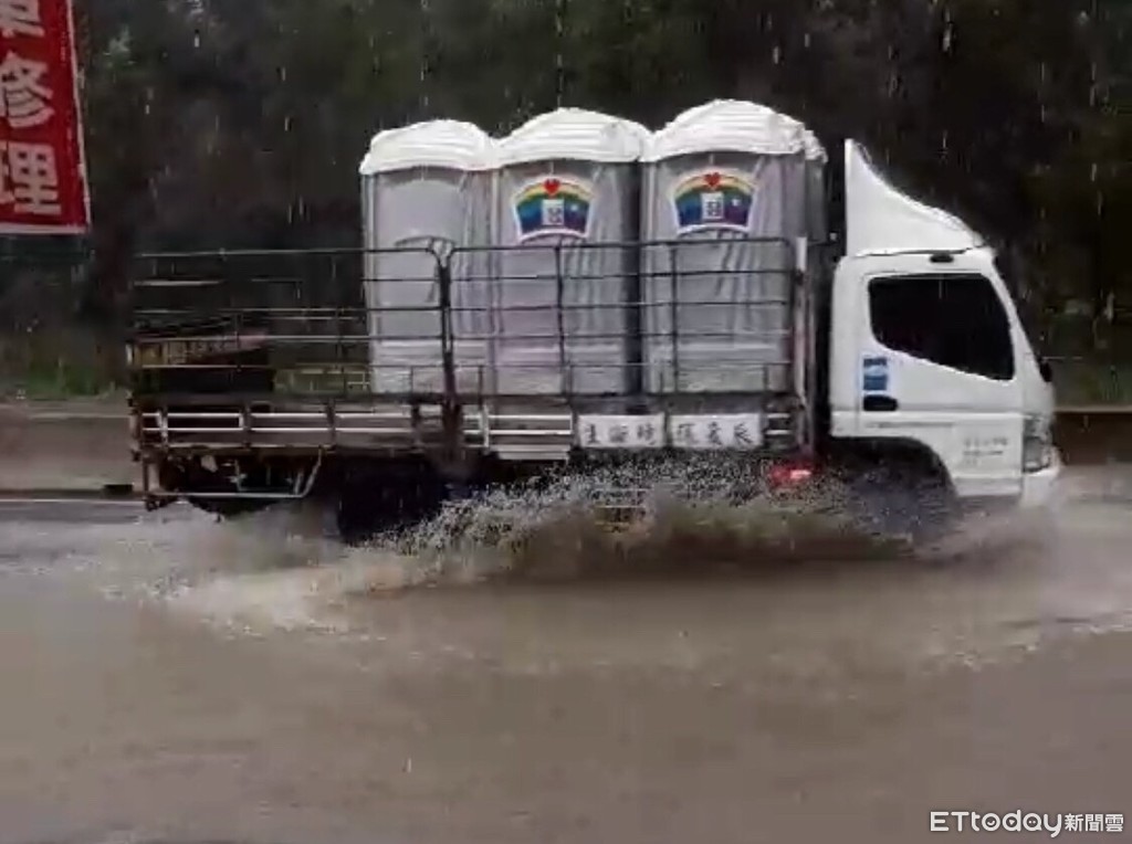 ▲今日下午,樹德科技大學門口前突然淹水。(圖/記者宋德威翻攝,下同)