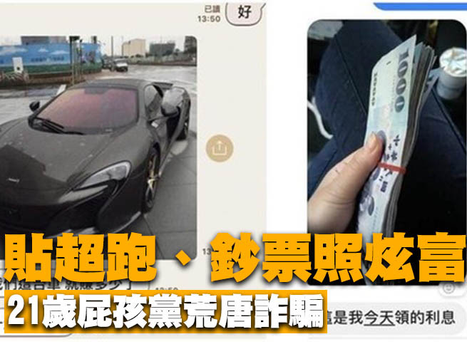 台中市警一分局破獲一個「假投資超跑、真詐騙」集團,逮捕一群平均年僅21歲的屁孩!嫌犯連超跑品牌都搞不懂,從網路下載超跑照片,謊稱投資超跑租賃,只要投資50,000元,每週可獲利65,000,還真有人因此投資了十幾萬!警方逮捕為首的莊姓男子等5人,訊後依詐欺、組織犯罪條例等罪嫌移送法辦。