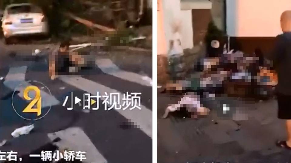 ▲▼路人被撞飛全癱倒在地,目前已造成2死13傷。