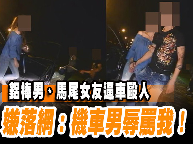 ►►►高雄騎士遭逼車!駕駛鋁棒猛打「哩查埔查某」 馬尾女友笑拍他肚