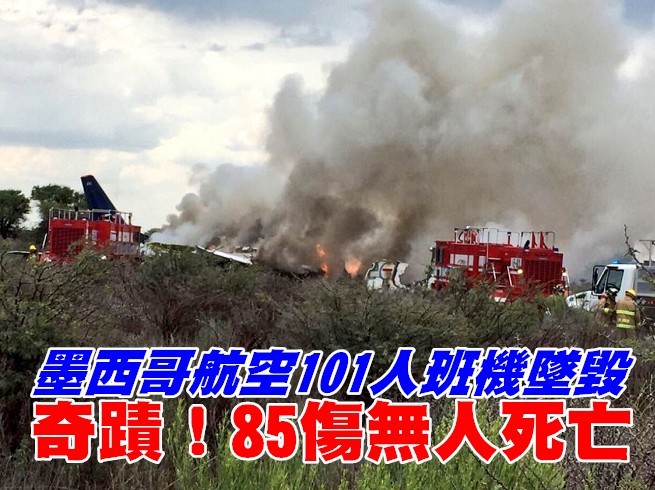 墨西哥國際航空(AeroMéxico)一架班機在當地時間31日下午3時許墜毀於杜蘭戈國際機場(Durango International Airport)附近,現場冒出濃濃黑煙。外媒指出,這架班機上至少載著101人,墨西哥航空已確認是一場「意外事件」。杜蘭戈州長托雷斯(José Rosas Aispuro)在推特上指出,相關細節將會陸續公布。而最新消息指出,85人受傷、沒有人員死亡。