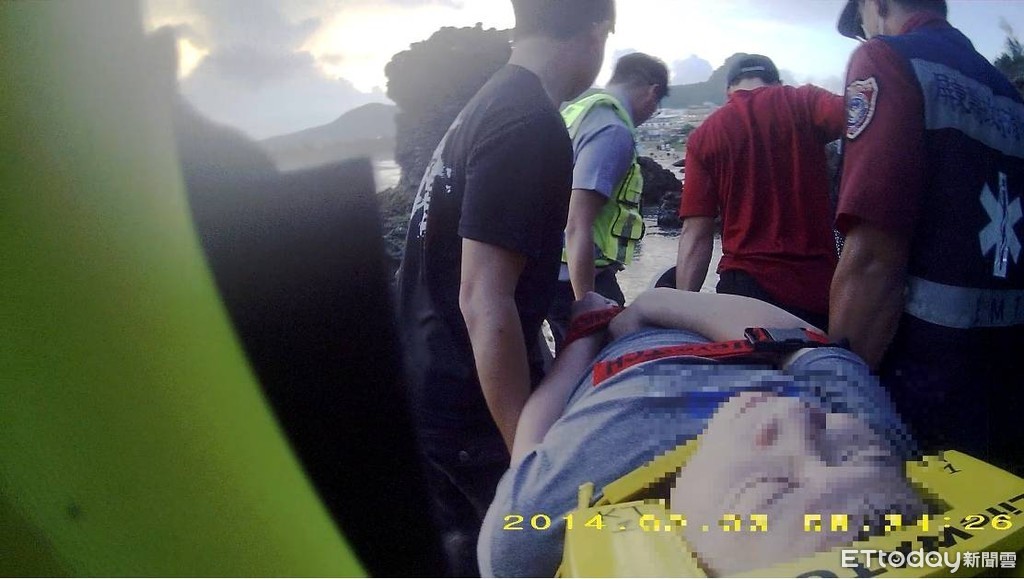 卡在礁岩動彈不得的男子無法行走,消防人員使用長背板固定後進行搬運,但因現場為礁岩區,還一度涉水,著實增加搬運之困難度,到達沙灘區後還有熱心的民眾前往詢問是否需要幫忙,不得不說台灣最美的風景就是人了,所幸該名患者意識尚清楚,全身沒有什麼明顯外傷,直嚷著感謝消防人員的幫忙,消防人員亦回應安撫其情緒,挽回一條性命。