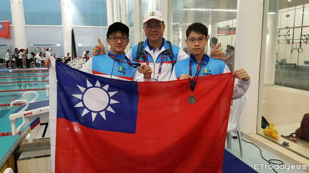 ▲台北市代表團吳金盛團長(中)與簡立璿(右)、侯伯宇(左)選手分享得獎喜悅。(圖/台北市教育局提供)