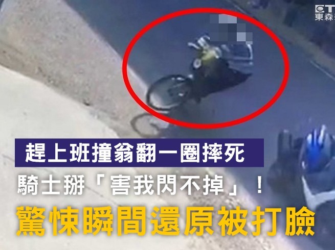 ▲趕上班撞翁翻一圈摔死,騎士瞎掰「害我閃不掉」!(圖/東森新聞)