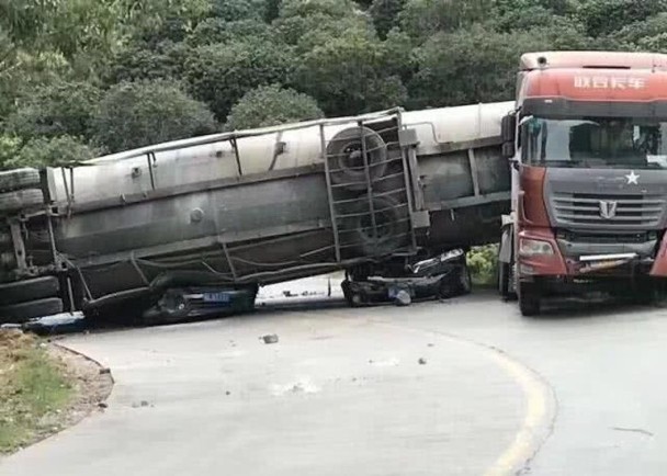 廣東惠州1日發生嚴重車禍,一輛水泥槽罐車行經平海鎮油麻園村路段時翻覆,壓扁2輛經過的小型轎車,造成8人當場死亡,1人送醫途中搶救不治,另2人受傷。
