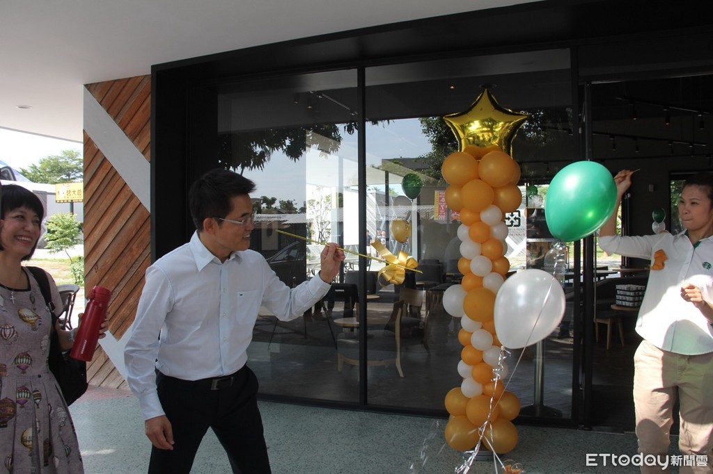 ▲台東鐵花新聚落嶄新風貌的「星巴克台東新生門市」盛大開幕,縣長黃健庭伉儷前往致賀。(圖/台東縣政府提供,下同)