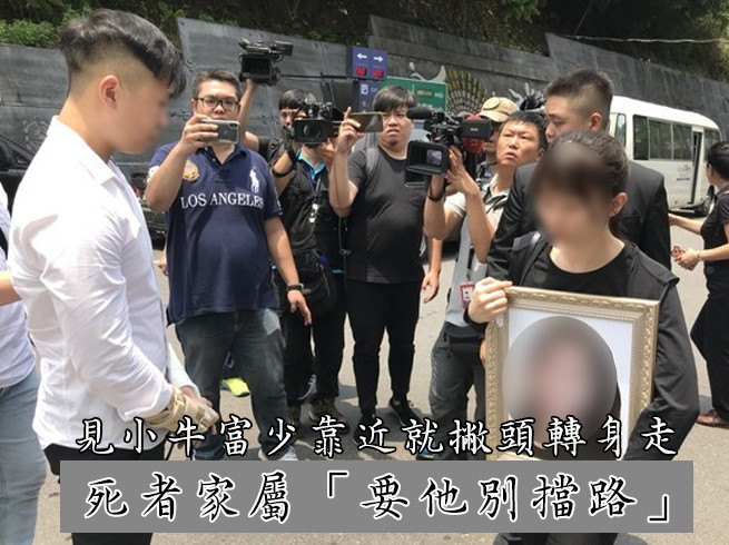 對於游瀚甯出席告別式的行為,女方家屬似乎不是很領情,現場就出現了,當女方家屬拿著劉女遺照時,要求從一旁走來的游男「不要擋路」,甚至當富少走靠近女方家屬時,對方是直接撇頭起身,場面一度尷尬。