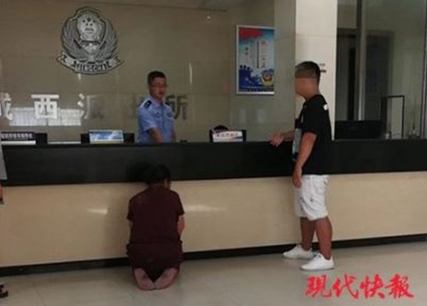 ▲姚艷跪在值班台前,無助的背影讓人看了忍不住鼻酸。(圖/翻攝自微博/現代快報)