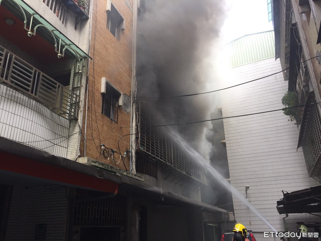 ▲新北市八里發生公寓大火, 3樓燃燒約15坪,起火戶為2樓,起火原因待查。(圖/記者林裕豐翻攝)