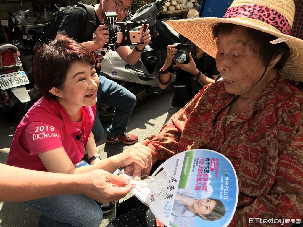 ▲台中市長參選人盧秀燕(左)掃街拜票。(圖/記者陳玉攝)