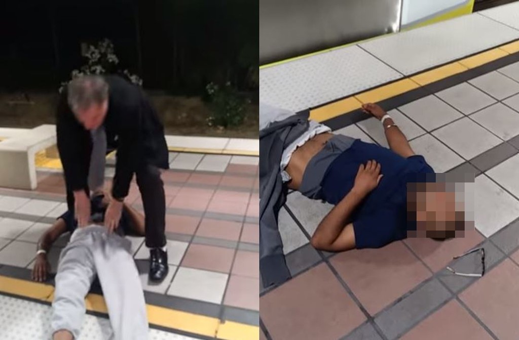 據了解,昏倒的男子先是癲癇發作,他手上還戴有醫療腕帶。穿著西裝的大叔見狀後,則是把病患拖到月台,還不小心扯掉對方的褲子,導致曝光,他最後又把昏倒男子的幾袋物品也扔到車外,回到位置等待發車。