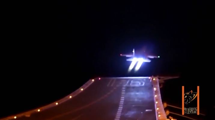 2017年底某天,解放軍殲-15戰機完成夜間起降航母訓練,畫面在近期曝光。駕駛殲-15的飛行員是海軍艦載航空兵部隊戰鬥機團團長徐英,畫面中的他舉起發光手套比出「讚」的手勢,宣示著任務圓滿成功。航母形成作戰能力,艦載機起降是最基本的技術基礎,難度卻也超乎想像。由於航母甲板能夠滑行的距離很短,飛行員必須迅速將飛機提升到起飛速度,十足考驗著技術層面和心理素質。