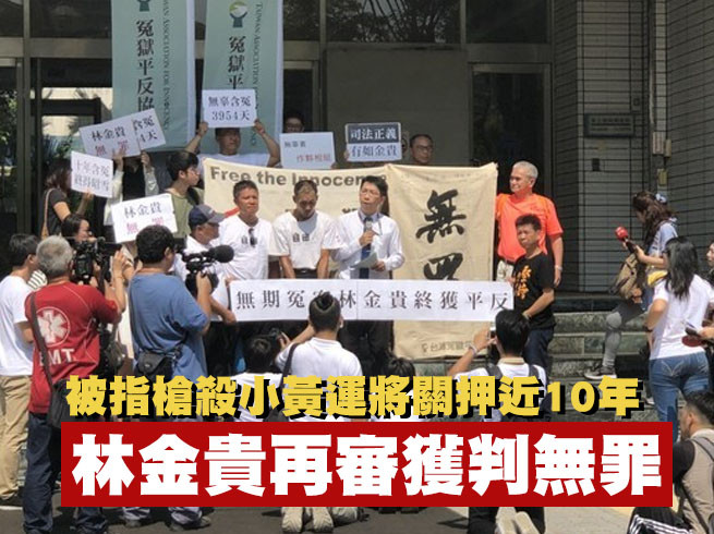 男子林金貴被控2007年槍殺鳳山一名王姓計程車司機,被判無期徒刑,不過全案諸多疑點,他始終否認涉案,加上台灣冤獄平反協會兩次提起再審、姊姊提出新事證,高等法院高雄分院於2017年4月裁准再審,並停止刑罰執行,同時間他也從台南監獄獲釋放。而歷經數月審理,高雄高分院7日宣判,林金貴獲判無罪。