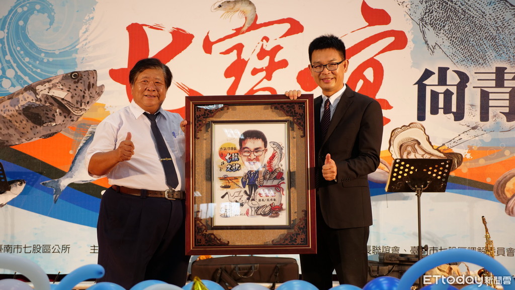 ▲七股區長莊名豪調升交通部觀光局花東縱谷國家風景區管理處副處長,市政顧問王丁乙匾祝賀。(圖/記者林悅翻攝)